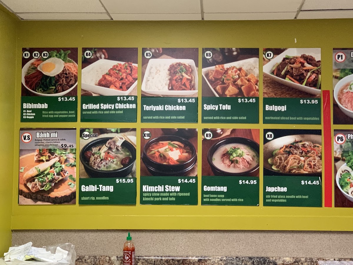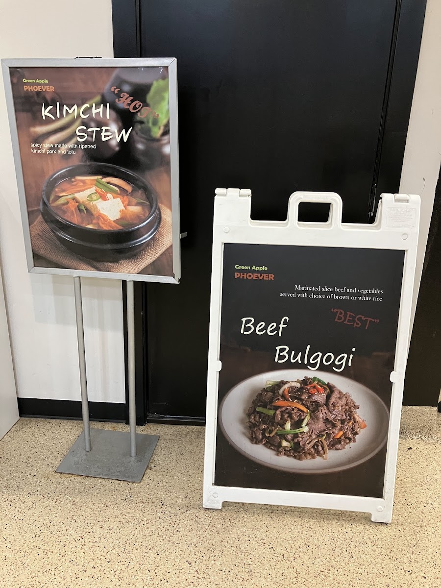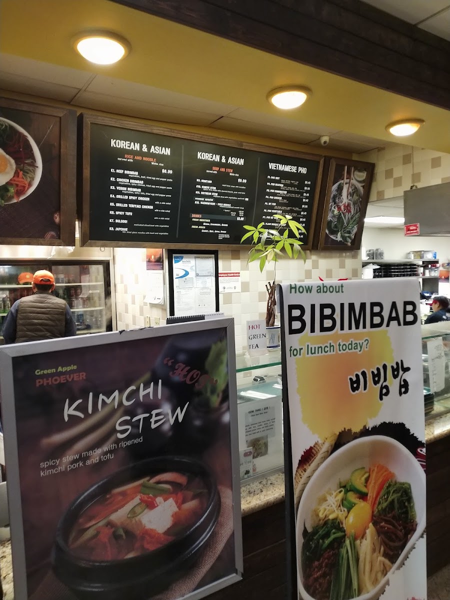As someone wrapping up a full look at the menu, I find that Green Apple Phoever delivers a well-balanced and satisfying selection that reflects both Vietnamese comfort food and Korean-Asian favorites. The Specials immediately set the tone, with hearty and flavorful choices like Galbi-Tang, Bulgogi Ban Mi, and Spicy Pork Bulgogi, all of which highlight bold marinades and slow-cooked depth that feel perfect for a food court setting without sacrificing authenticity. Moving into the Vietnamese classics, the Vietnamese Pho section is clearly the heart of the menu. Options such as P1. Dac Biet, P2. Pho Seafood, P3. Pho Combination, P4. Pho Chicken, and P5. My Pho offer something for every preference, from rich beef-based broths to lighter chicken and seafood variations, making pho lovers feel truly catered to. The menu then expands confidently into Korean and Asian dishes, adding variety and warmth with items like K1. Beef Bibimbab, K4. Grilled Spicy Chicken, K5. Grilled Teriyaki Chicken, K6. Mapo Tofu, and K7. Bulgogi. These dishes round out the experience with rice bowls, grilled proteins, and savory sauces that complement the pho rather than compete with it. Overall, the menu feels thoughtfully curated, offering familiarity without being repetitive and variety without being overwhelming. As a conclusion to everything presented, Green Apple Phoever’s menu stands out for its clear structure, comforting flavors, and cross-Asian appeal, making it a reliable and enjoyable choice for anyone looking for a satisfying meal in the heart of downtown Chicago.